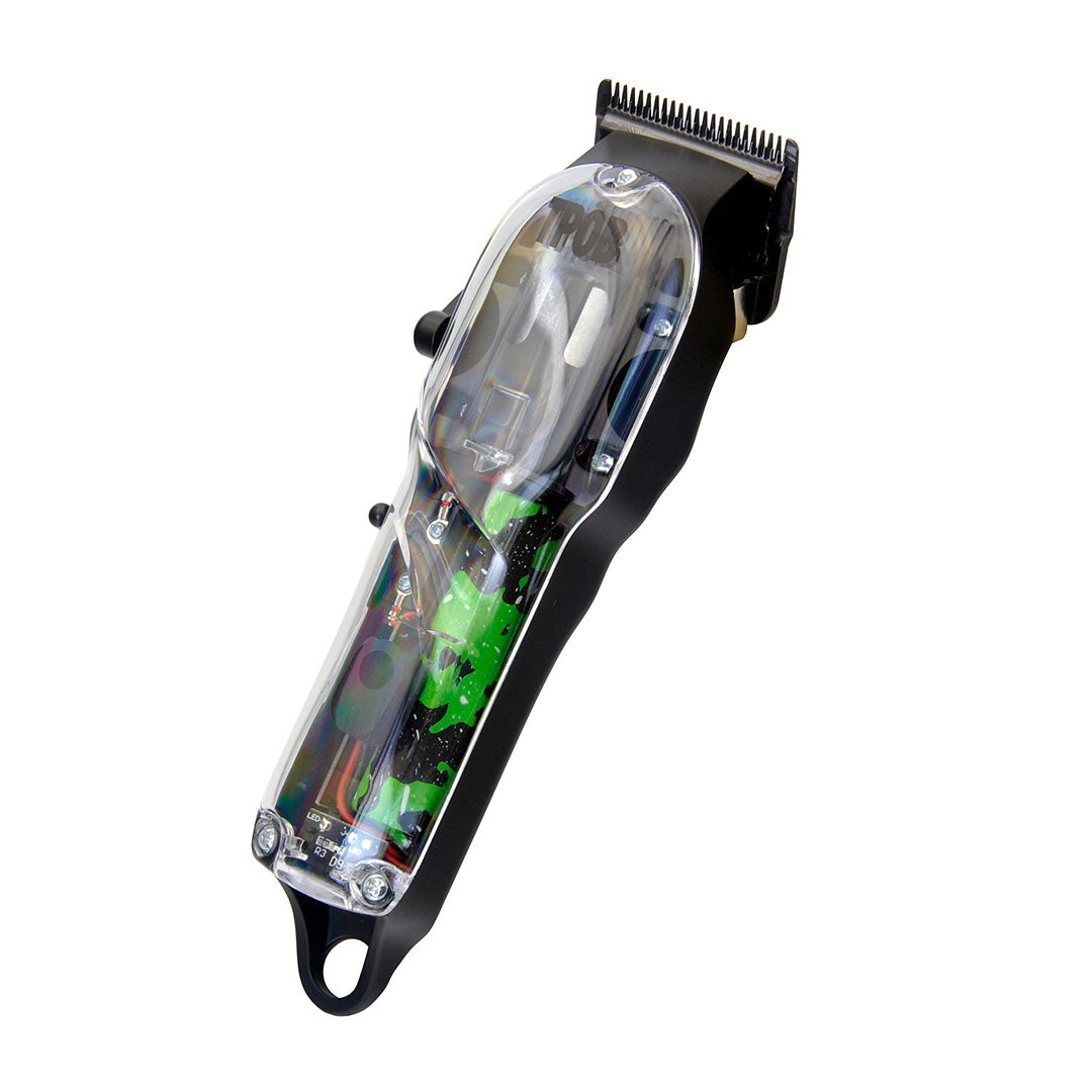 Think the Ghost on Steroids, this trimmer now comes equipped with a carbon steel blade, stronger Lithium ion battery, USB charging stand and a faster 7500 RPM motor to take the hair off easier than ever!