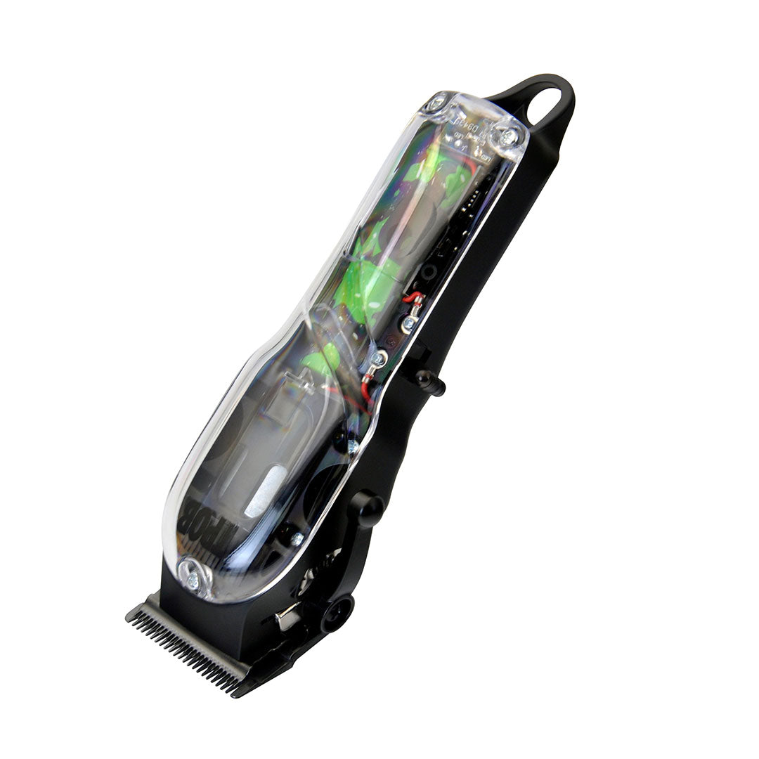 Think the Ghost on Steroids, this trimmer now comes equipped with a carbon steel blade, stronger Lithium ion battery, USB charging stand and a faster 7500 RPM motor to take the hair off easier than ever!